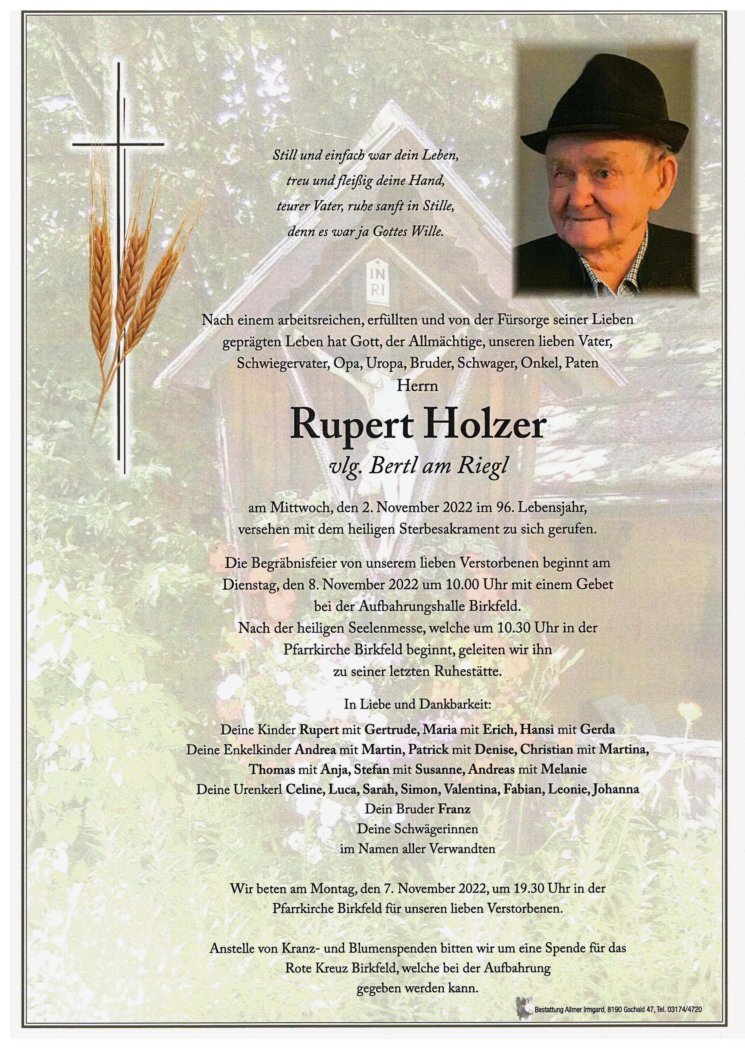 Aufrichtiges Beileid Familie Franz und Maria Holzer