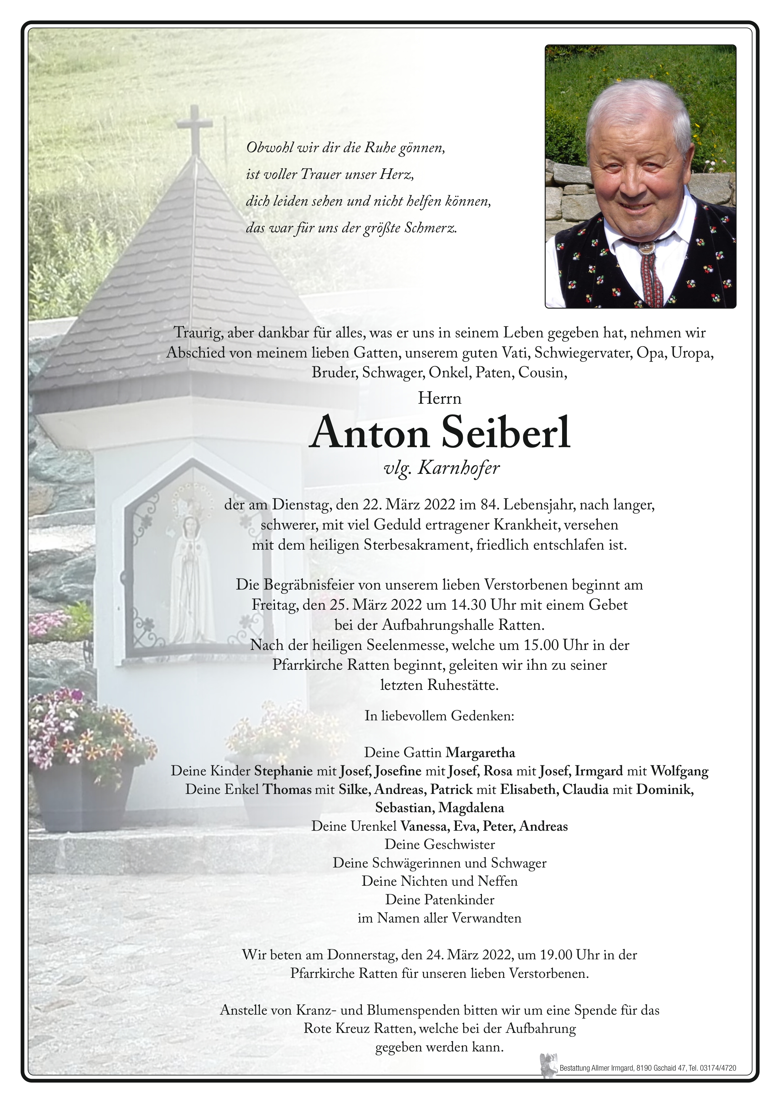 Ruhe in Frieden, lieber Toni! Unser aufrichtiges Beileid der Trauerfamilie Rudi und Sabine Hofer