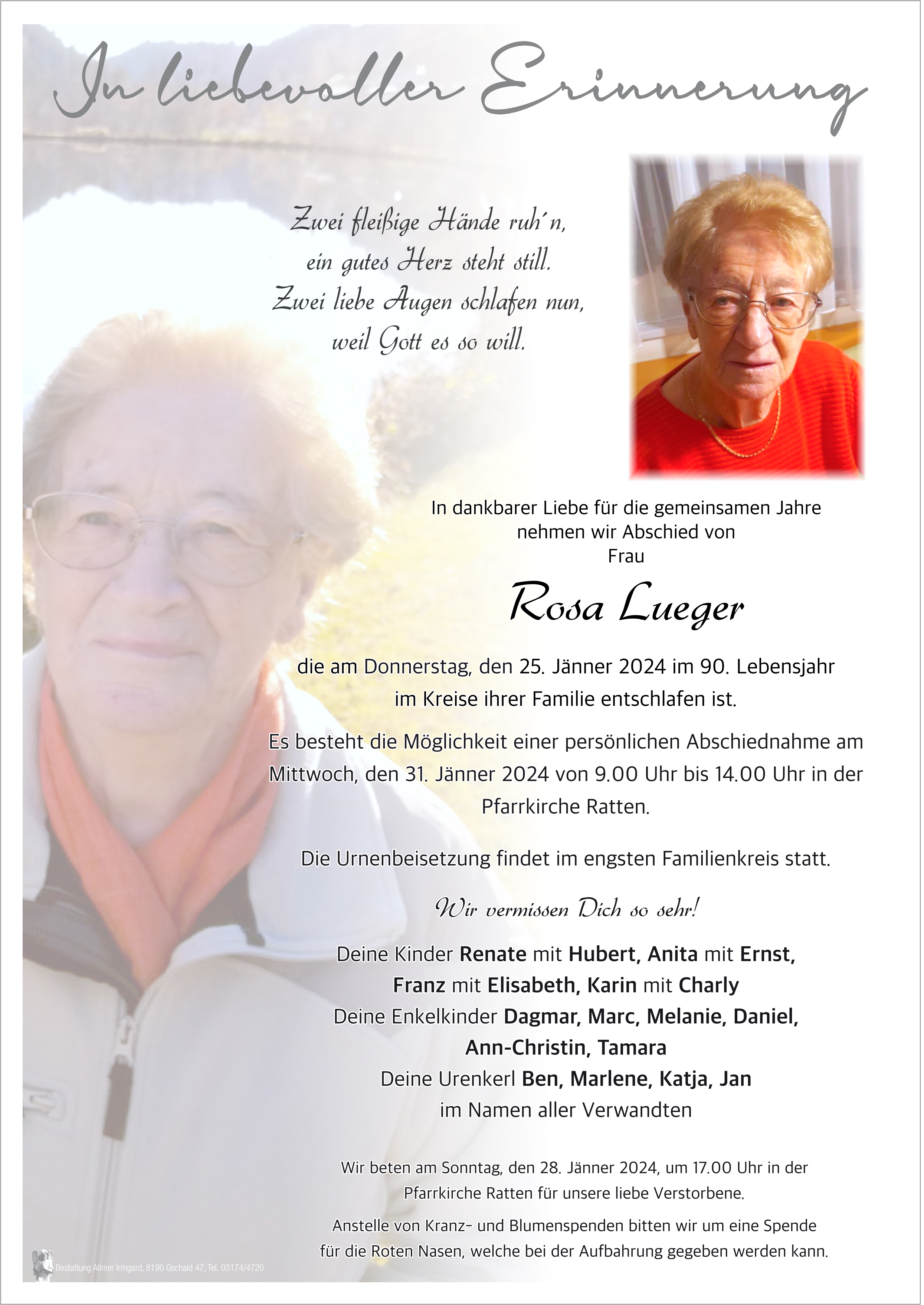 Mein aufrichtiges Beileid der Trauerfamilie, Ruhe in Frieden liebe Rosa, ein Licht leuchtet für Dich, Hermi Friesenbichler