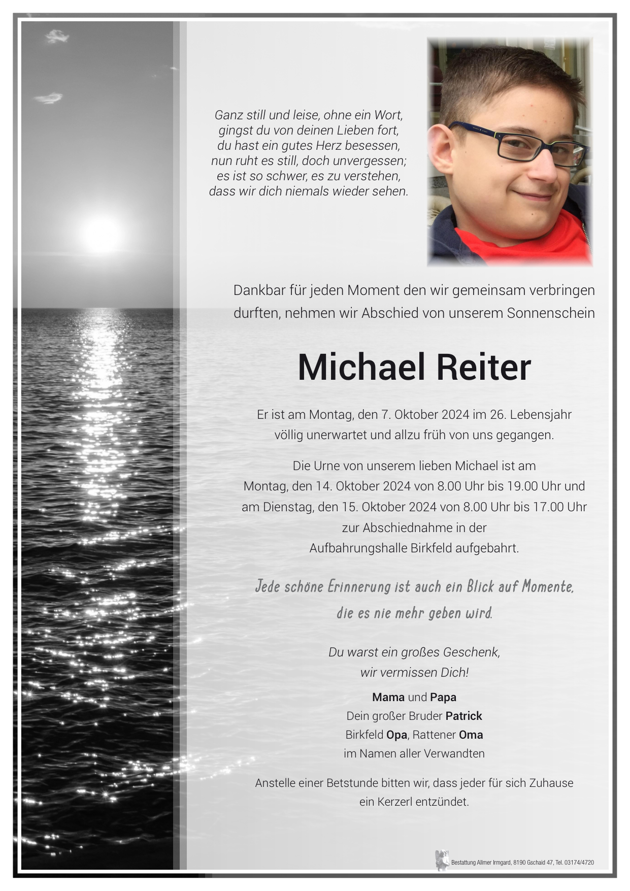 Liebe Familie Reiter - aufrichtige Anteilnahme im Namen des BORG Birkfeld - stellvertretend durch Michis Klassenvorstand, M.G.