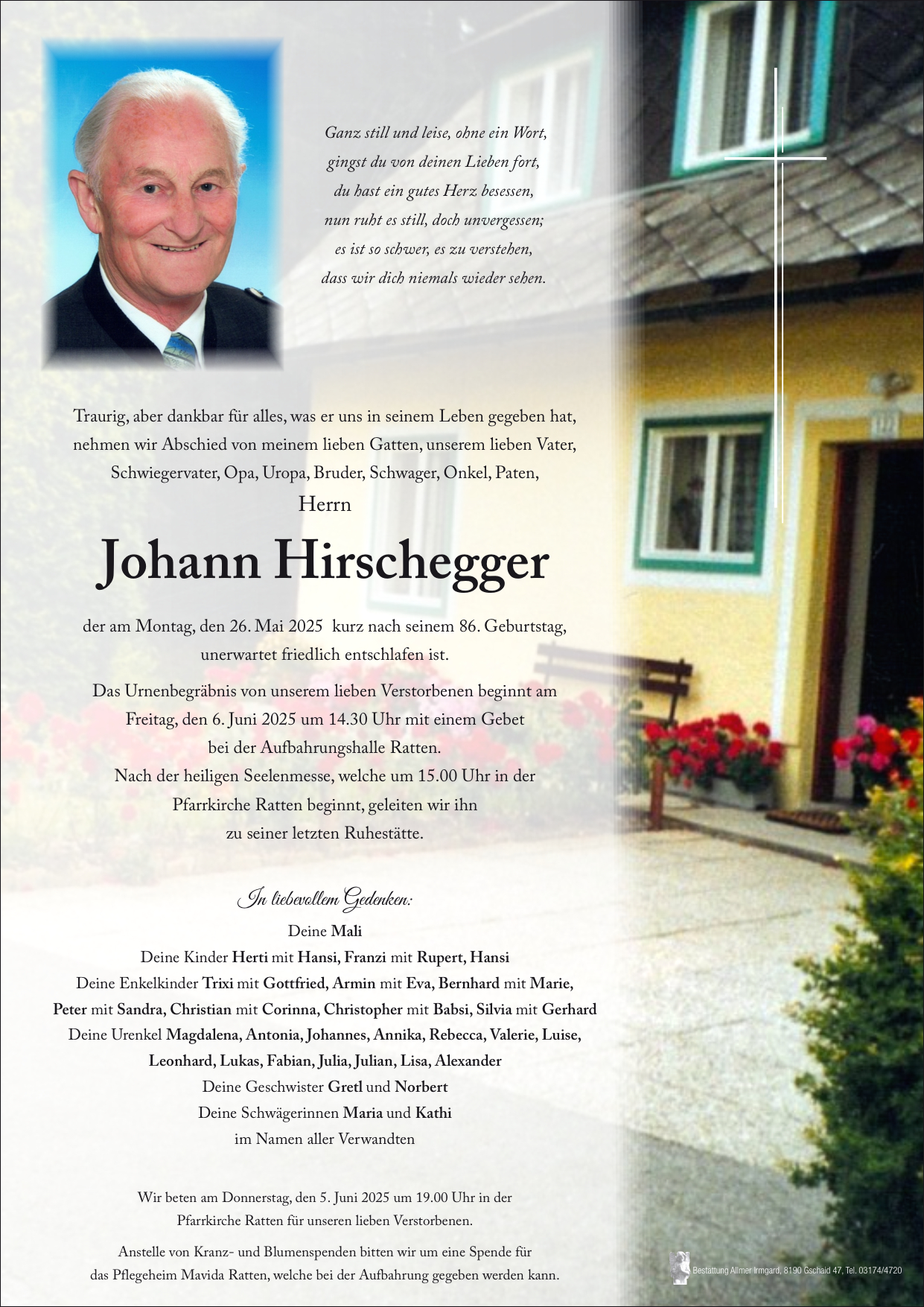Herzliches Beileid! Ruhe in Frieden! Fam. Friesenbichler (Hochegger)