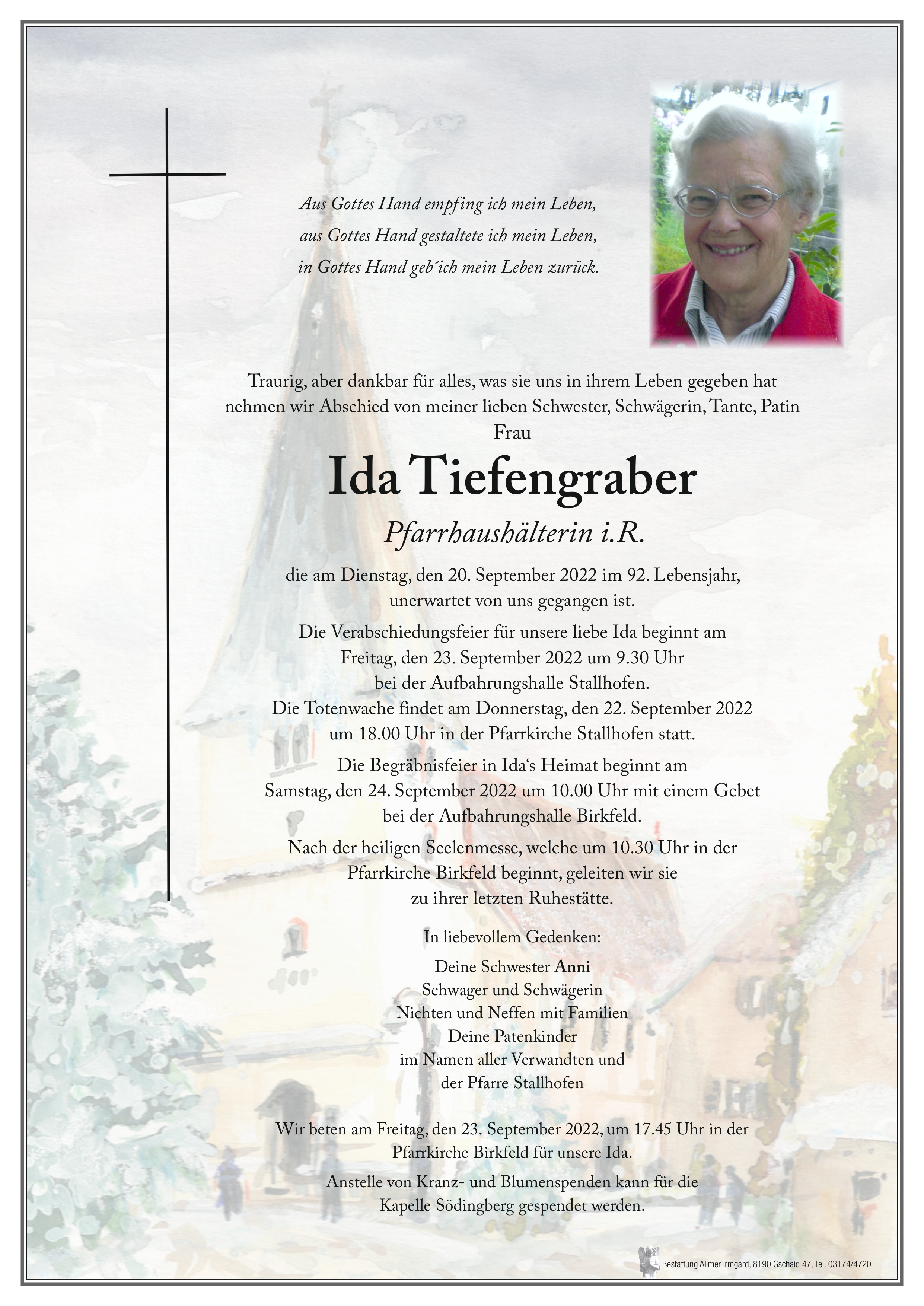 Liebe Ida ruhe in Frieden! Letzte Grüße von Maria Unterberger