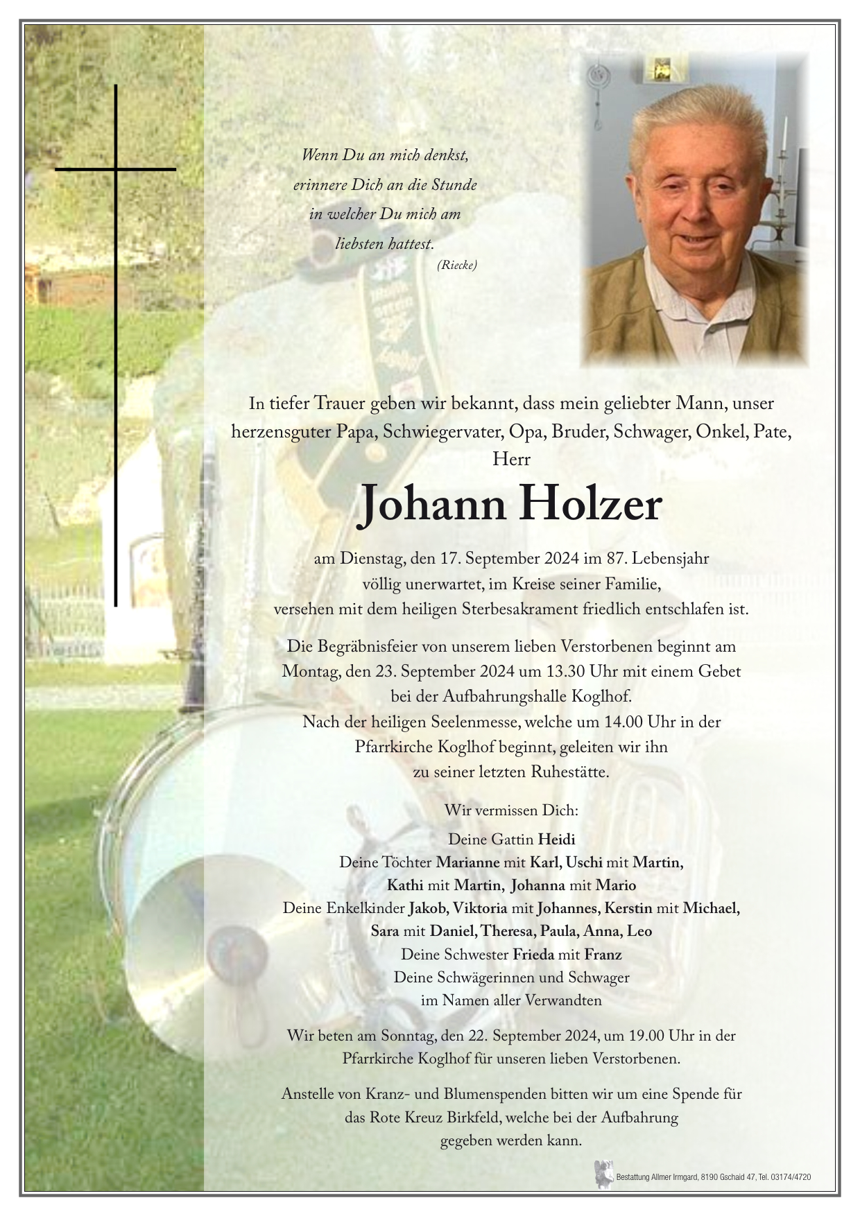 Unser aufrichtiges Beileid! Familie Schinagl