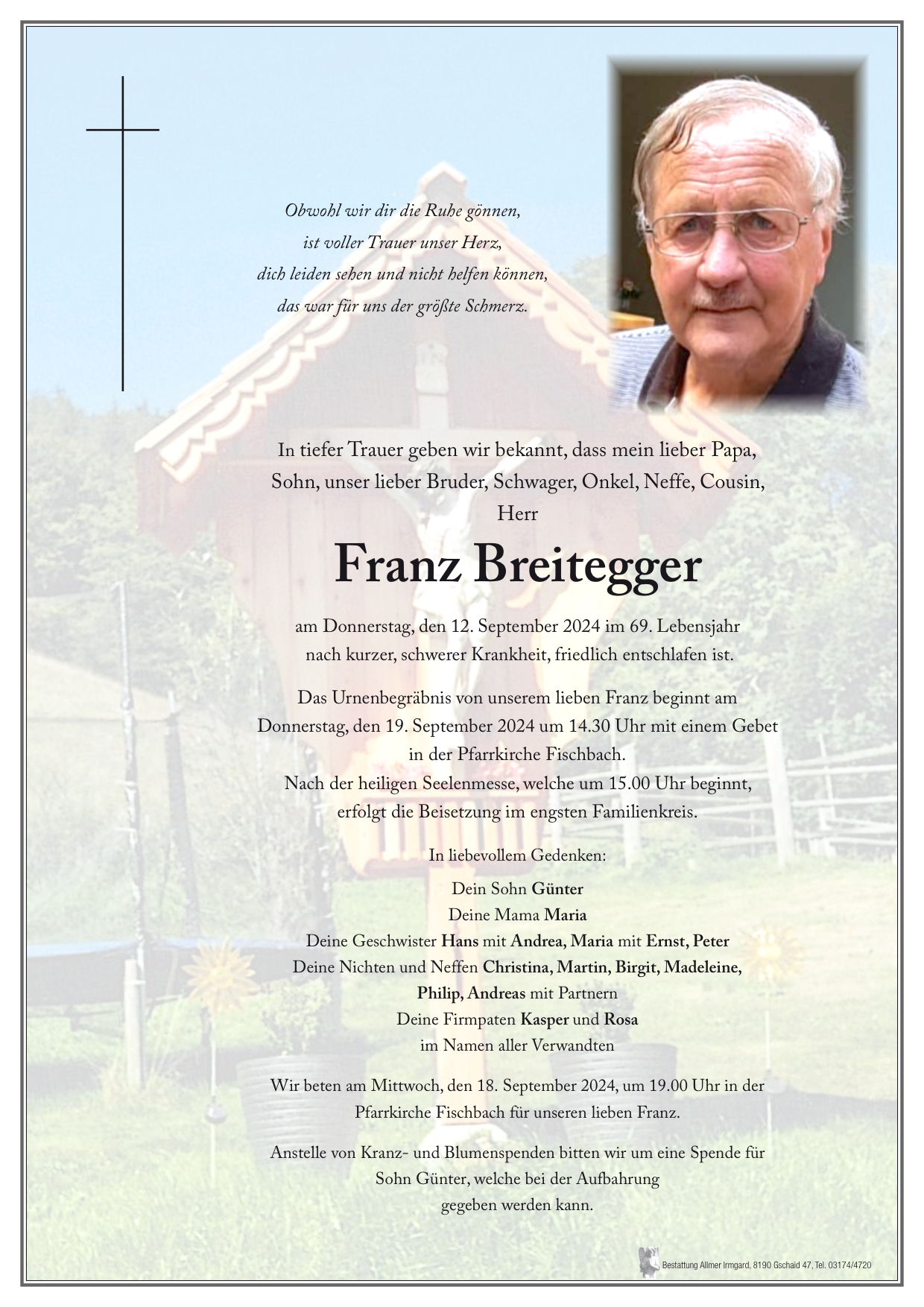 Aufrichtige Anteilnahme entbitten herzlichst die ganze Familie Mandl. Ruhe in Frieden.