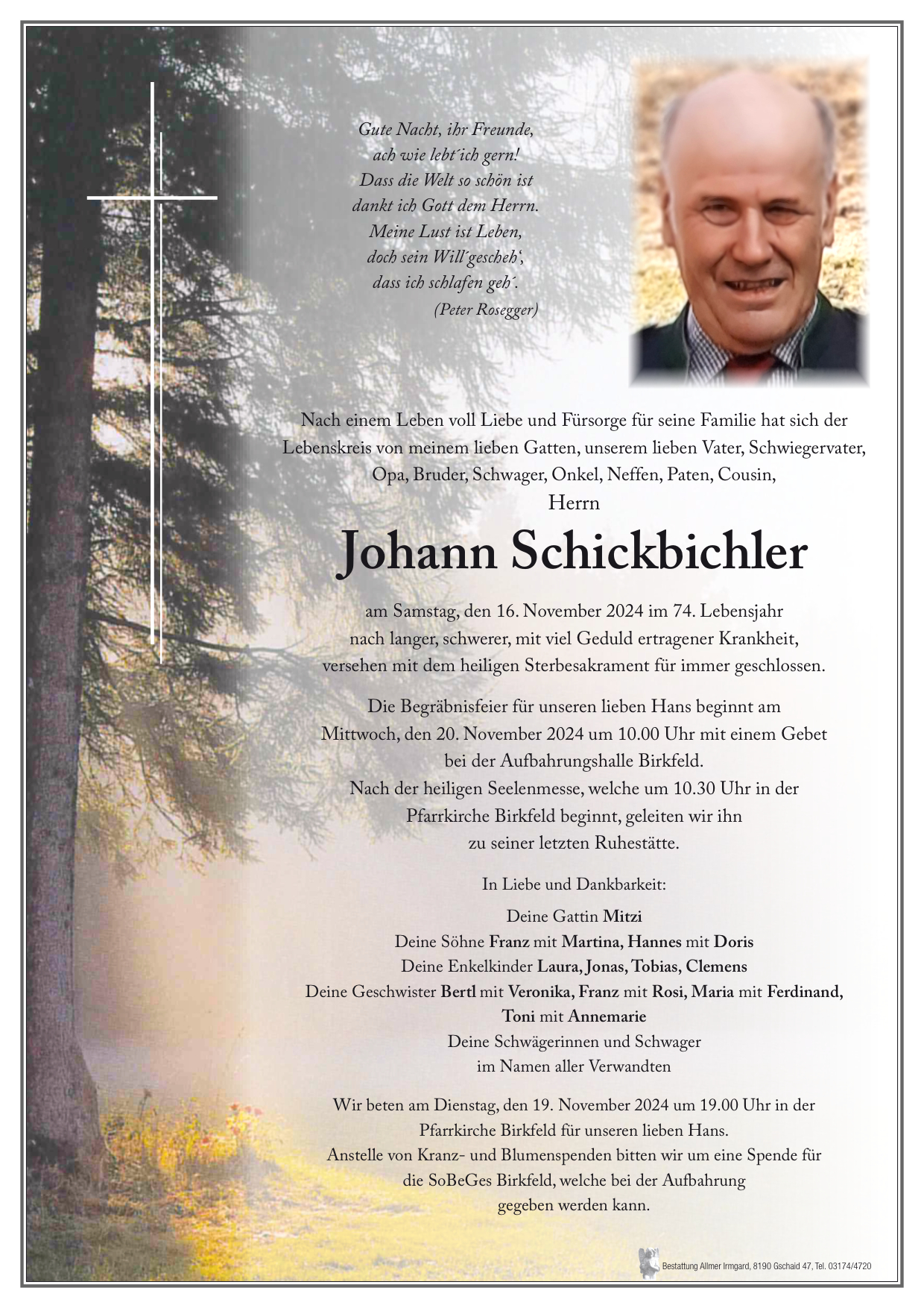 Ruhe sanft in Gottes Hand lieber Johann viel Kraft für diese schwere Zeit Hierzberger Maria