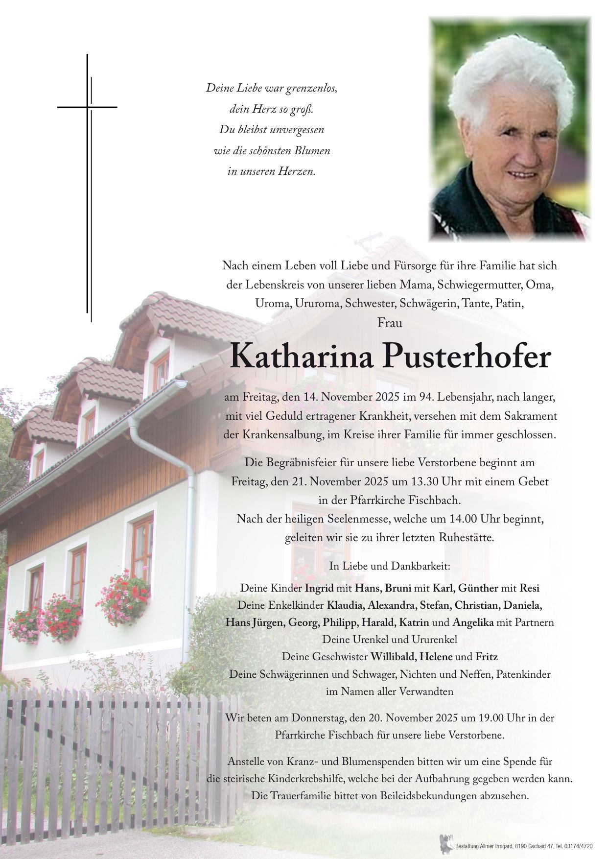 Mein aufrichtiges Mitgefühl der ganzen Trauerfamilie! Kathi Wiesenhofer