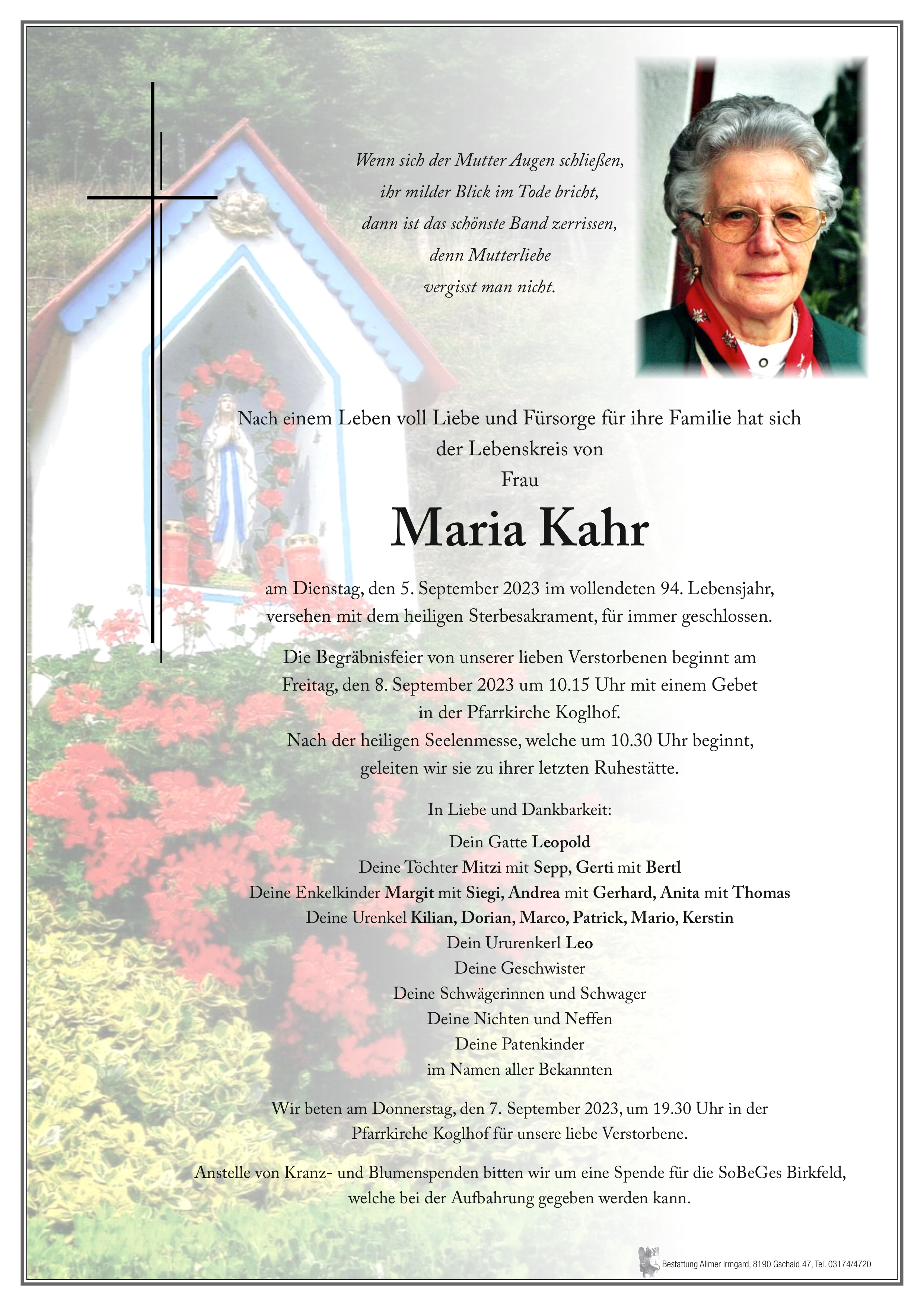 Aufrichtige Anteilnahme Maria Wiener Sepp Hausleitner