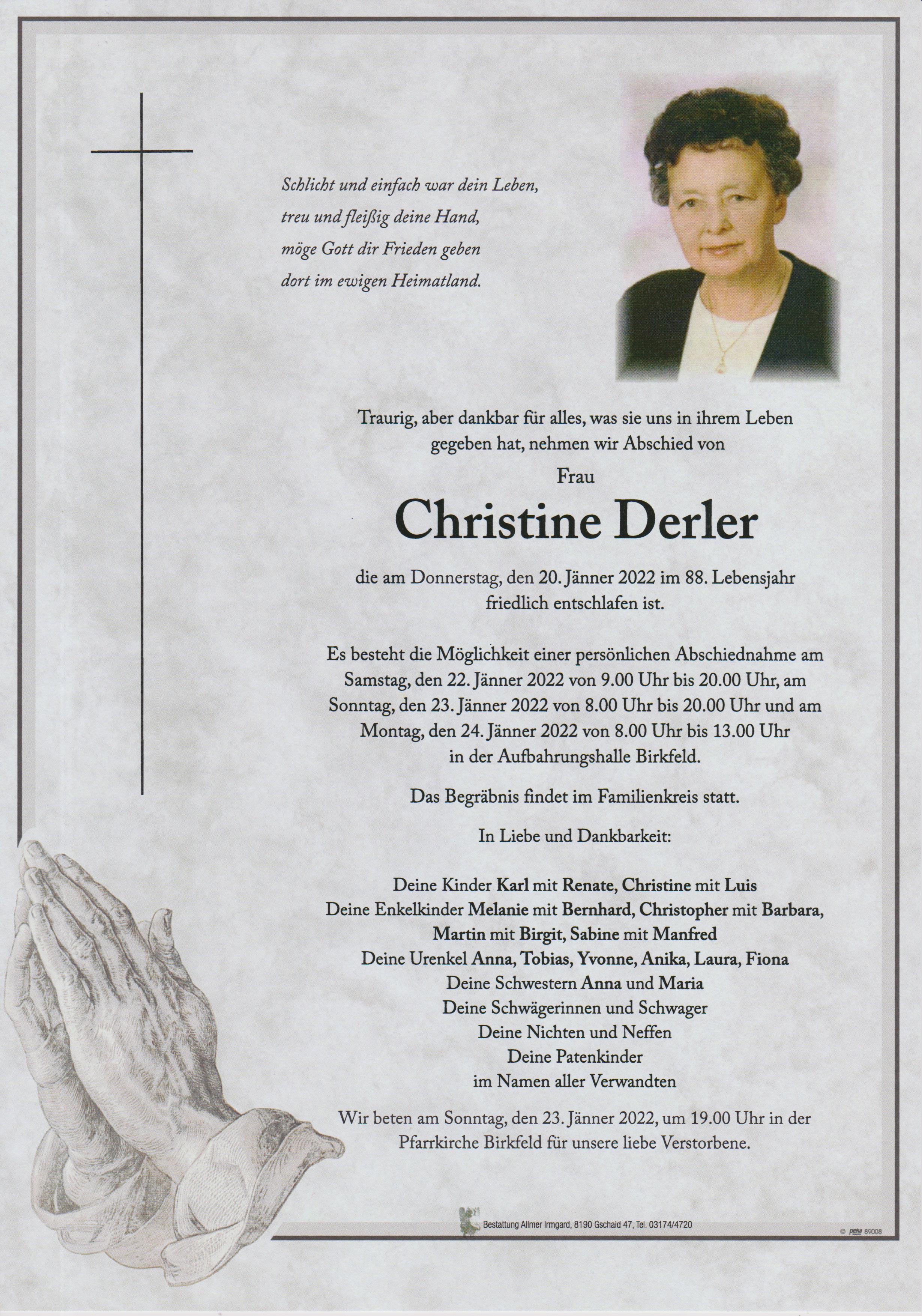 Herzliches Beileid entbietet Maria Derler mit Familie