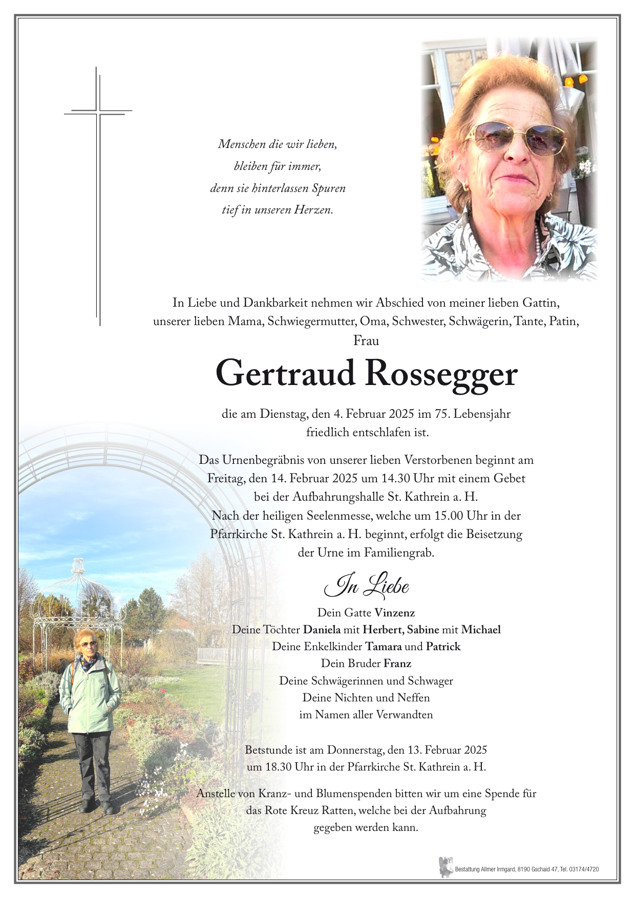 Wir werden dich in Erinnerung behalten, deine Tochter Sabine