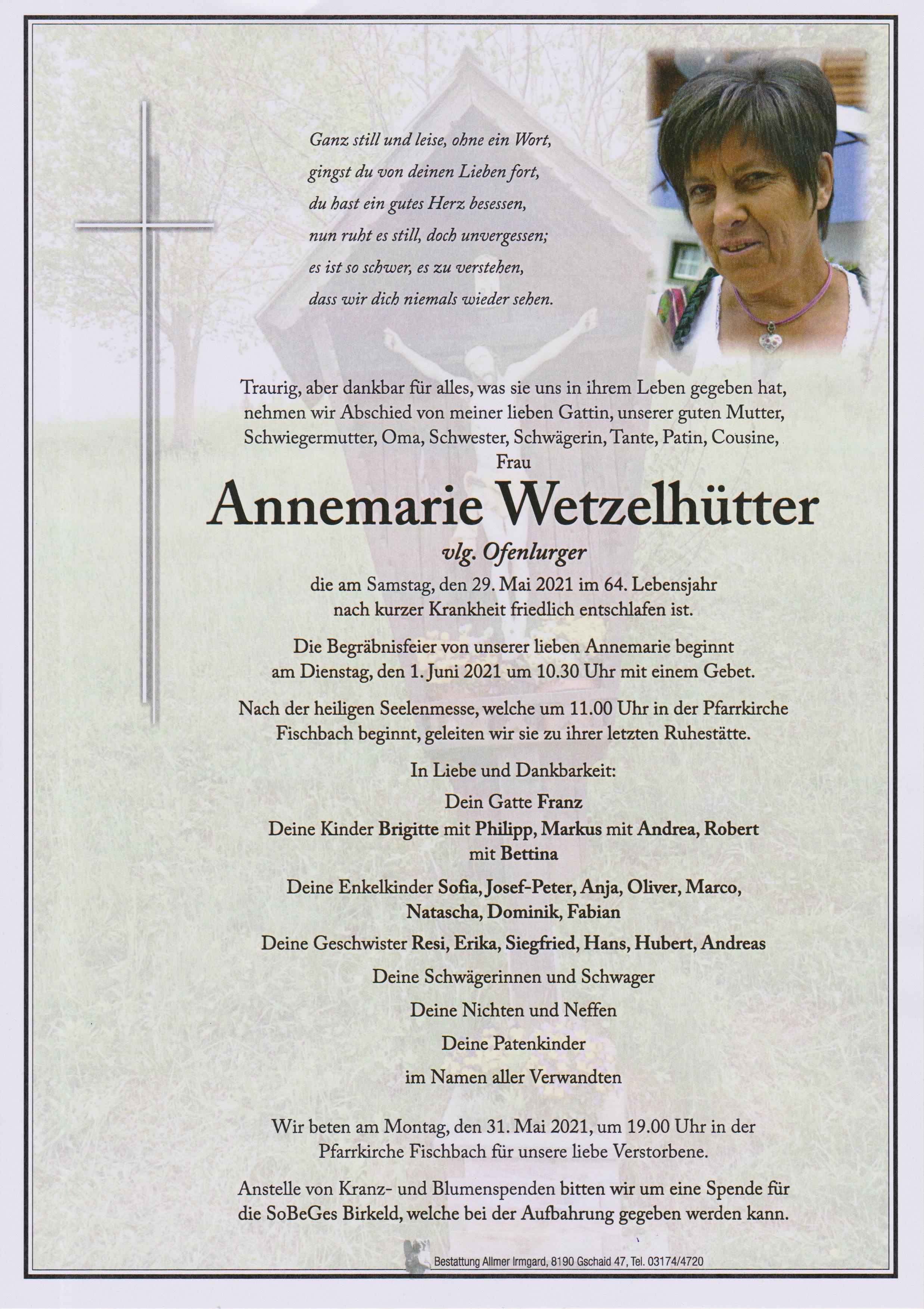 Unser herzliches Beileid Helga Wetzelhütter mit Familie