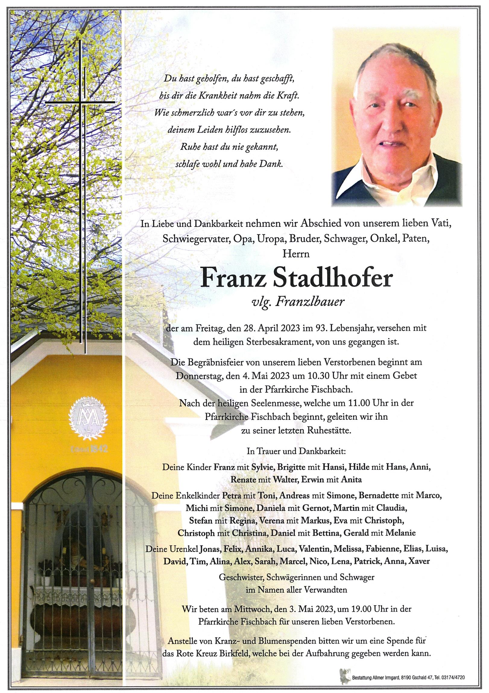 Der Tod ist das Tor zum Licht am Ende eines mühsam gewordenen Weg.Lieber Opa/Urliopa Ruhe sanft in Gottes Hand.Eva, Christoph, Lena, Patrik und Anna 🌹