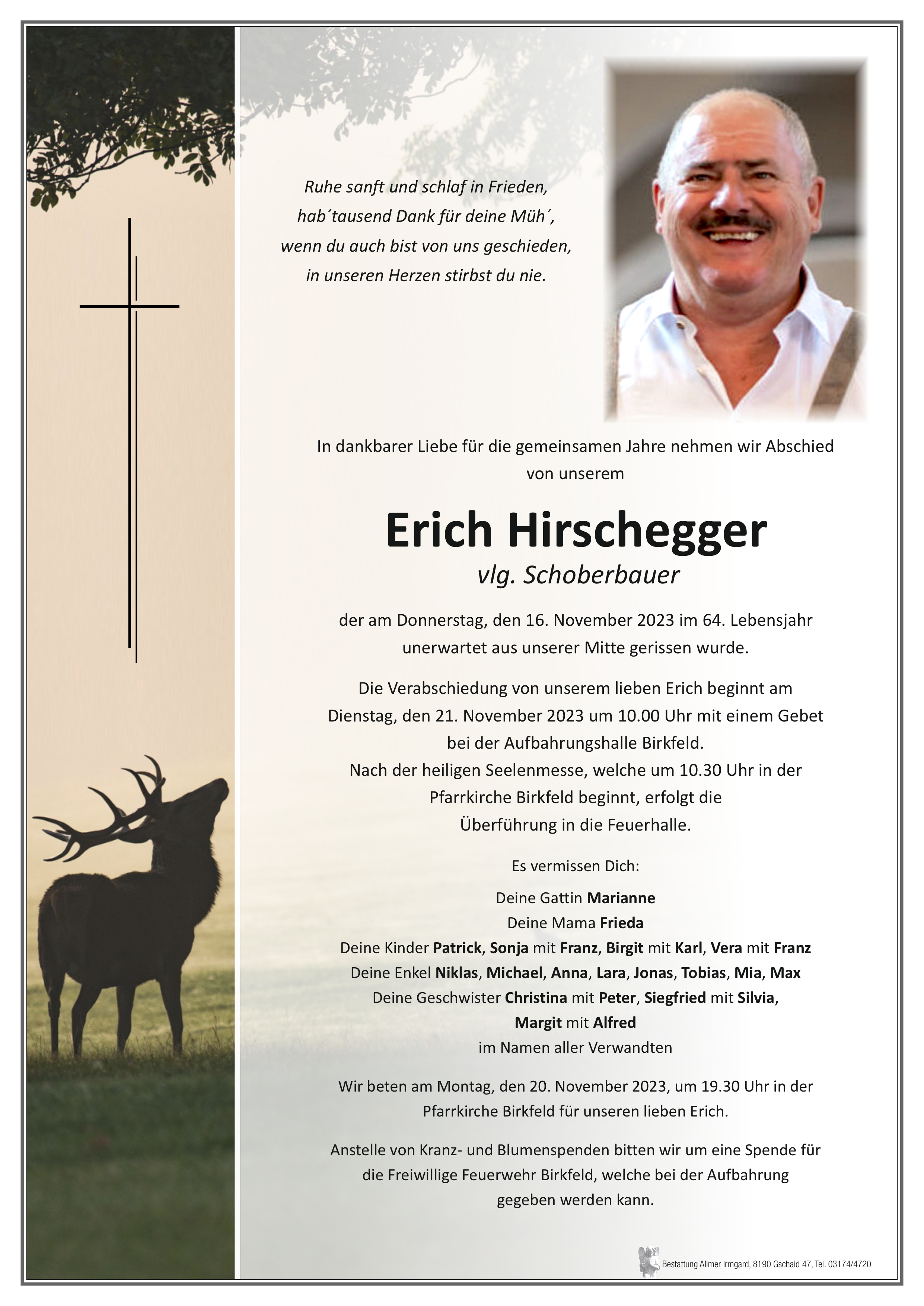 Unser tiefes Mitgefühl der Familie! Lieber Erich ruhe in Frieden ! Irmi u. Ernst Kohlhofer