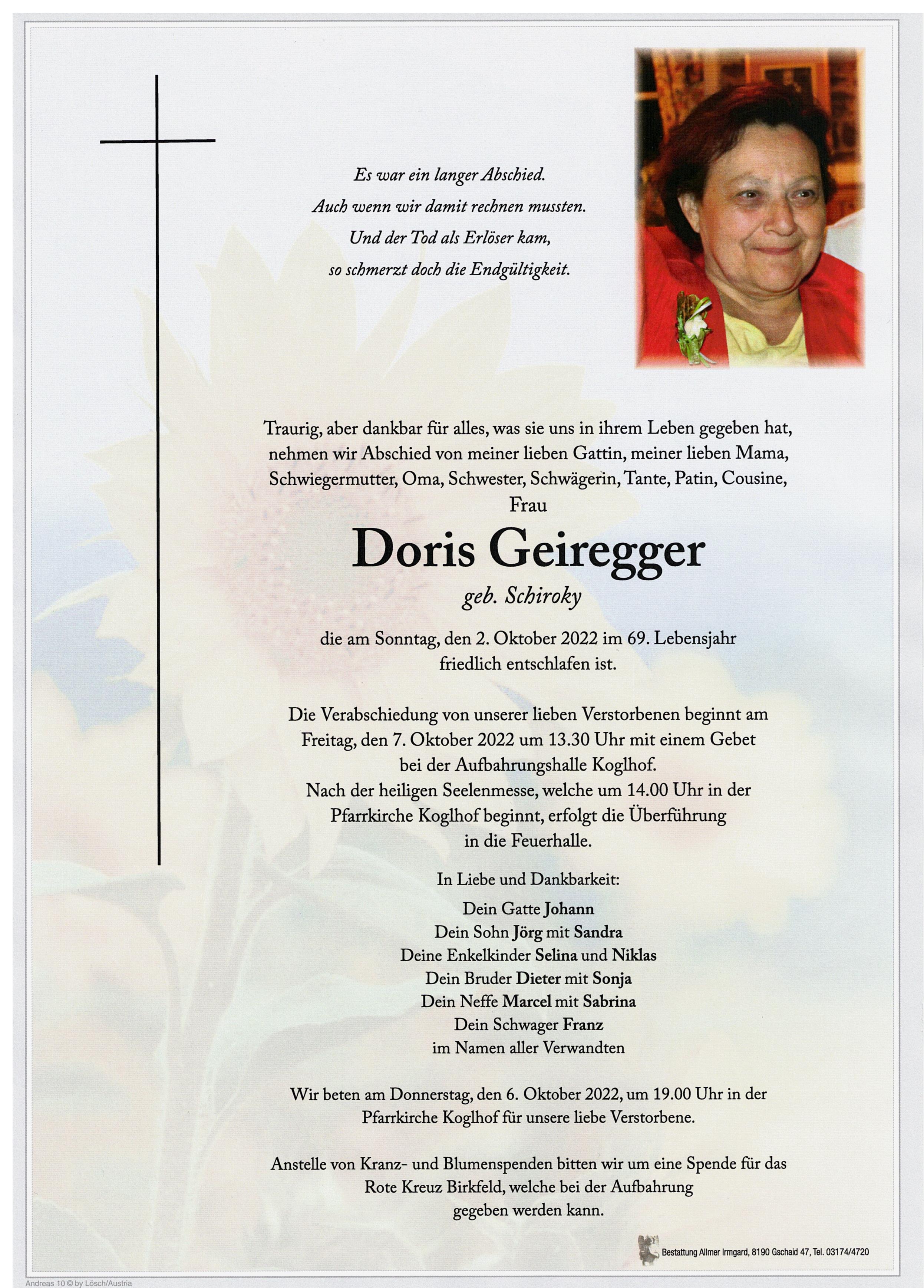 Ruhe in Frieden liebe Doris. Hans Sorger, Passail