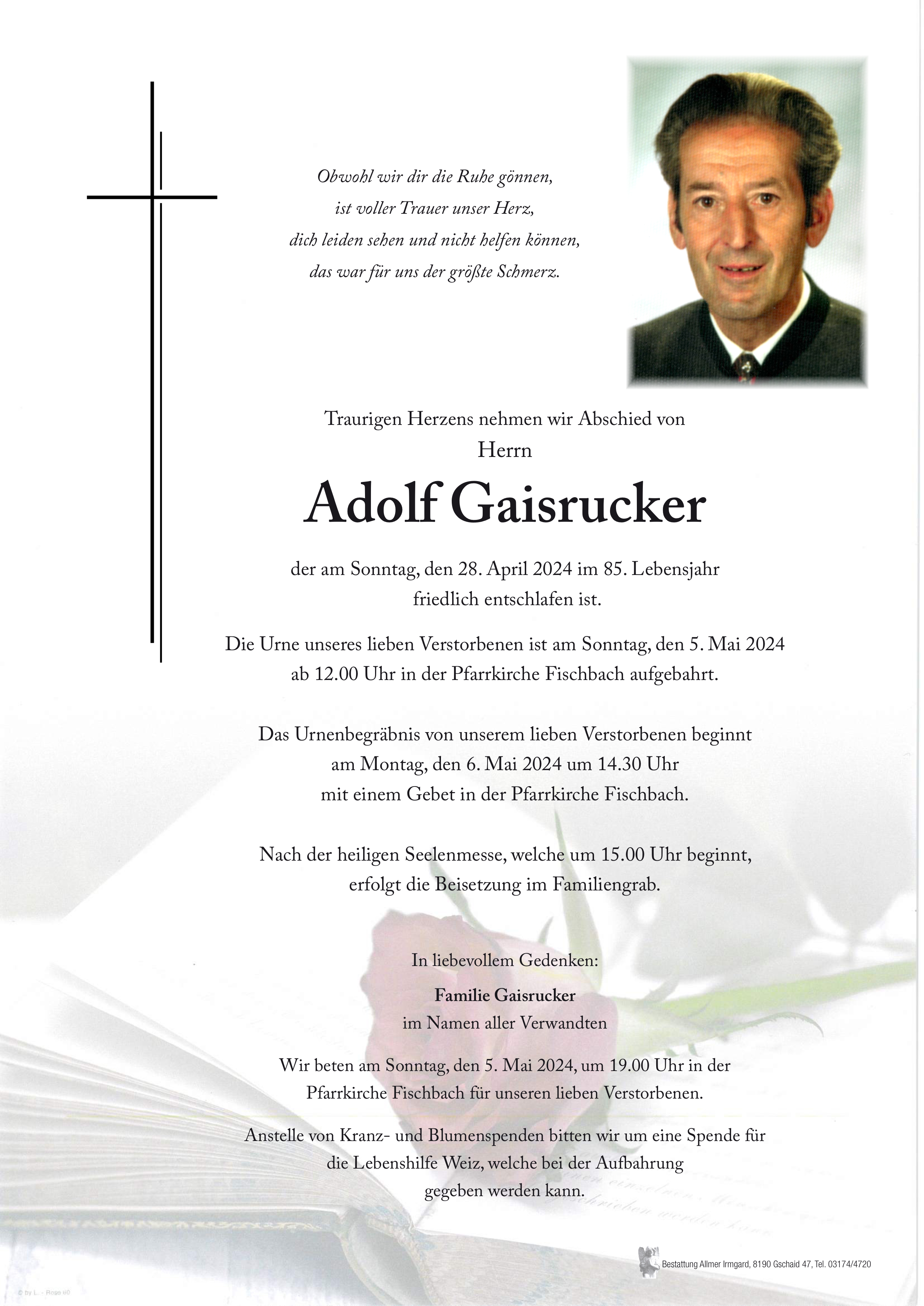 Pfiati lieber Herr Gaisrucker! In lieber Erinnerrung , Ruhe in Frieden .In Gottes Händen mögest du geborgen sein .🕯