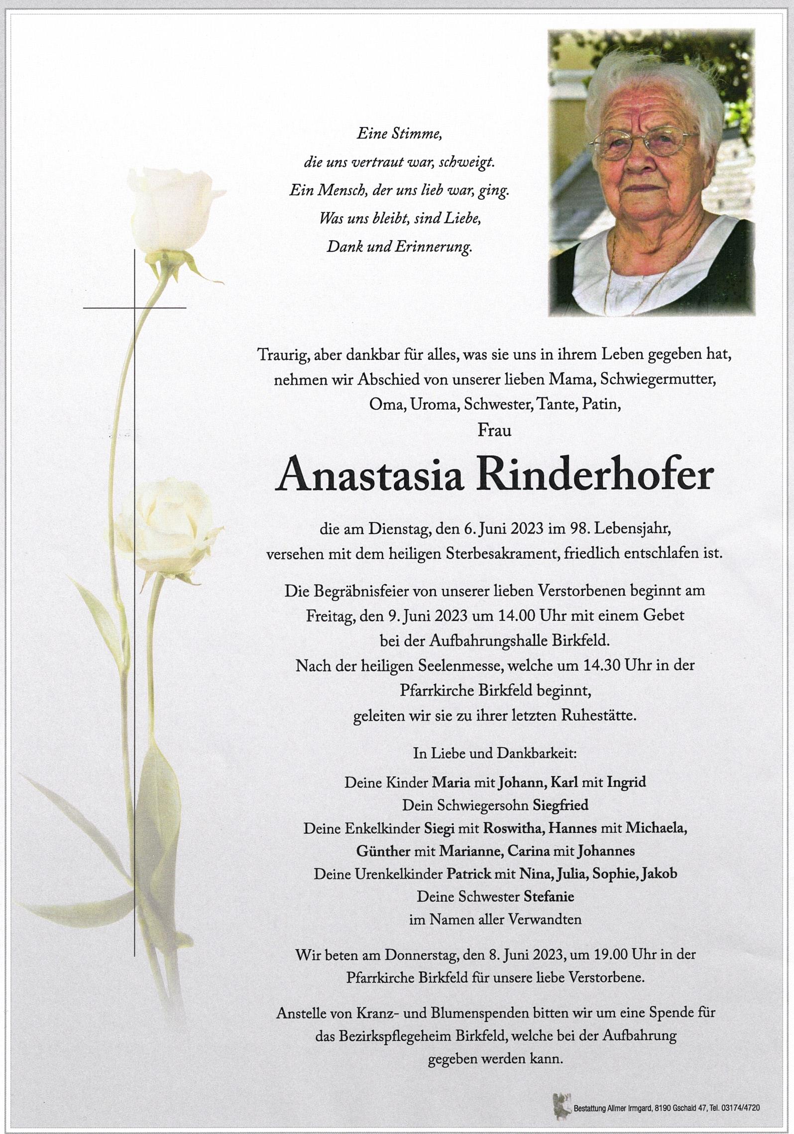Herzliches Beileid entbietet Maria Derler mit Familie