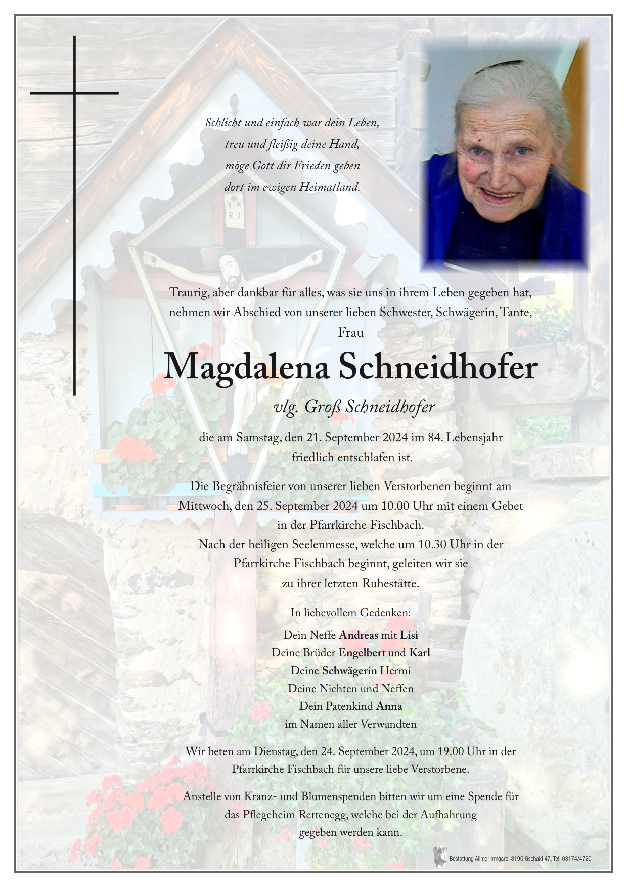 In lieber Erinnerung. Ruhe in Frieden liebe Frau Schneidhofer