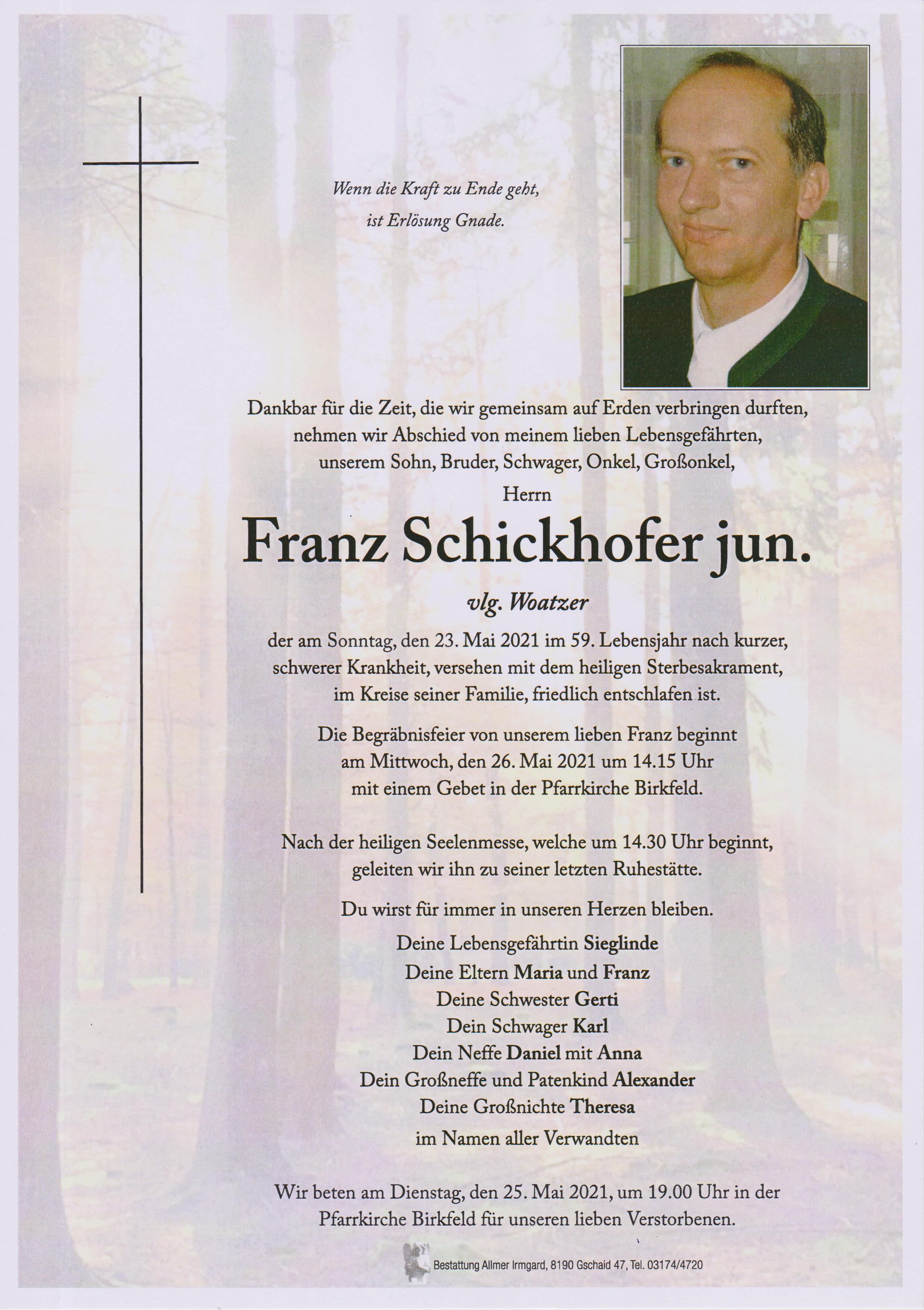 Aufrichtiges Beileid! Ruhe in Frieden lieber Franz. Dein Arbeitskollege René