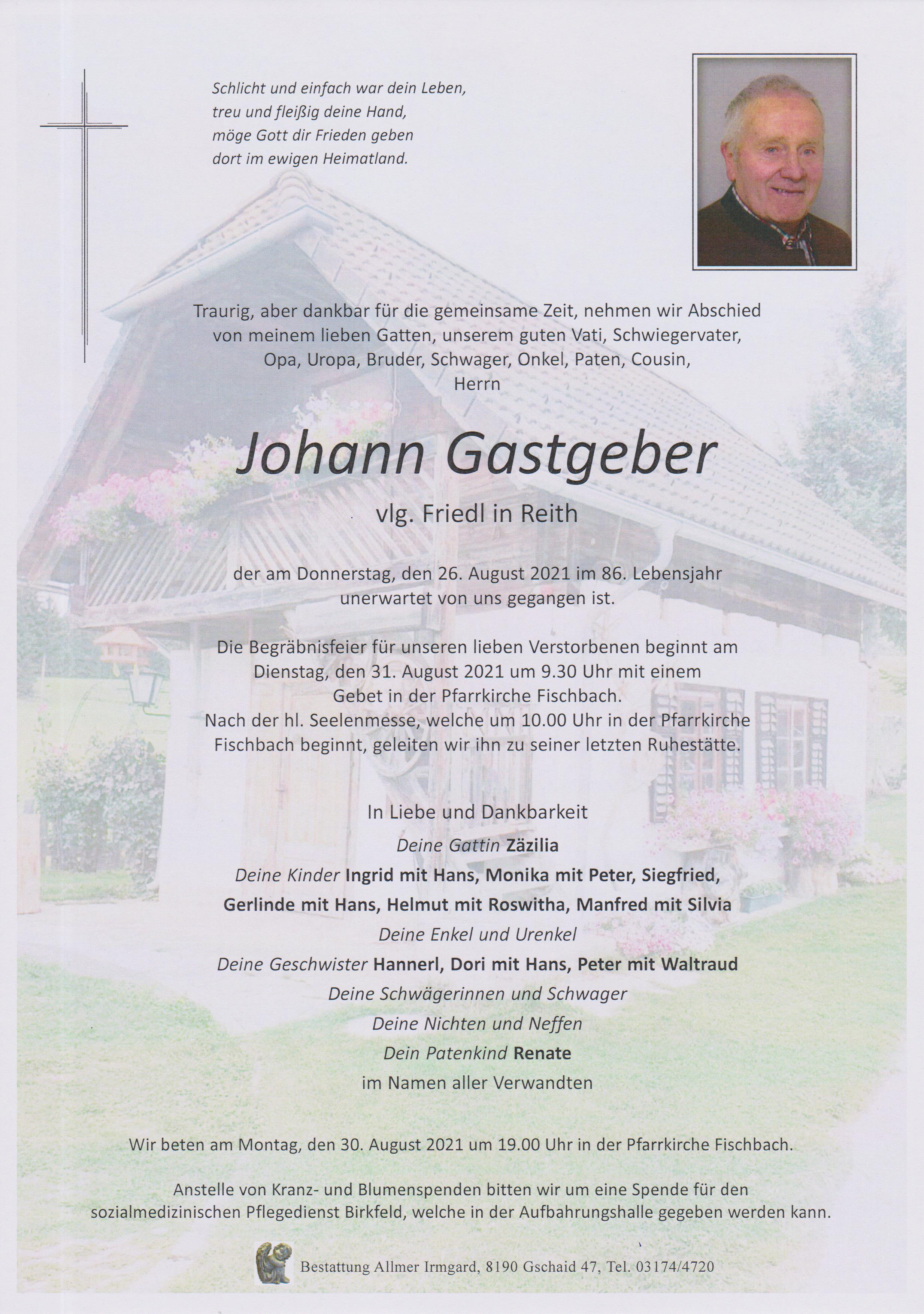 Aufrichtige Anteilnahme Familien Johann Schweighofer sen.jun