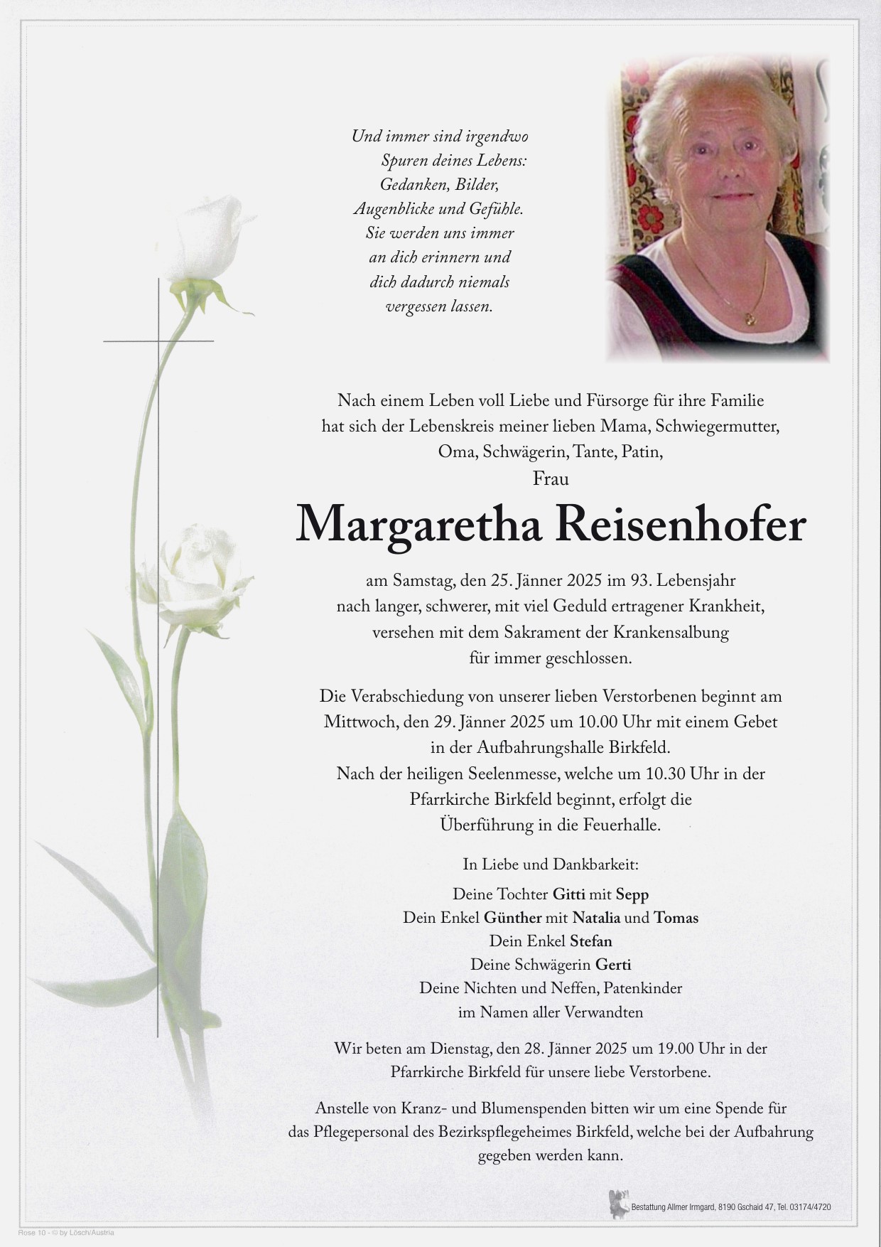 Ein Licht für deine letzte Reise Aufrichtige Anteilnahme der ganzen Familie entbieten Hermi Reitbauer und Fritz Lang. Ruhe in Frieden.