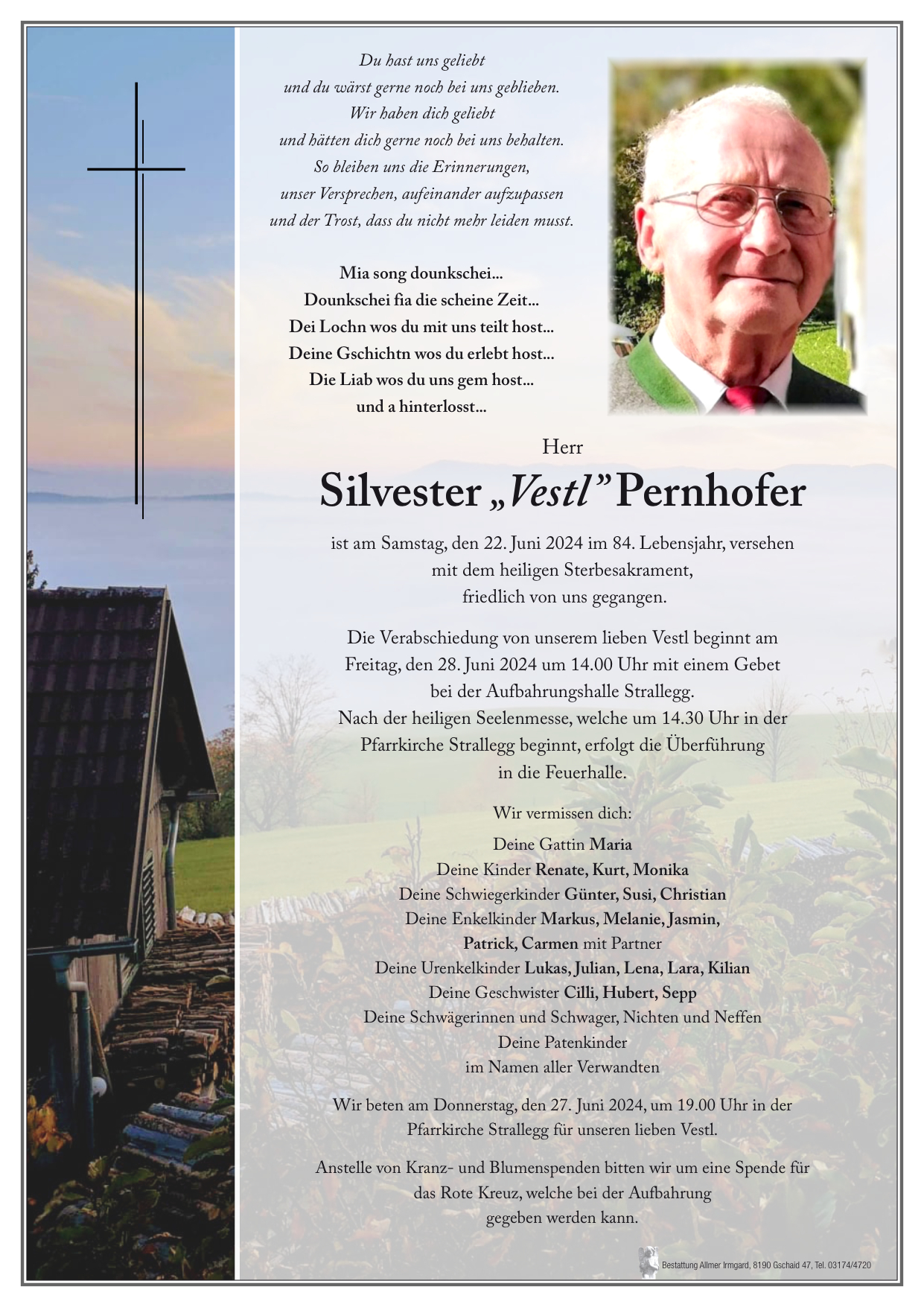 Mein Schwager und unser Onkelmag nicht mehren unserer Seite sein,aber er wird immer im unserem Herzen sein Patritz,Wolfgang, Günther,Andrea,Sepp,Markus und Ali