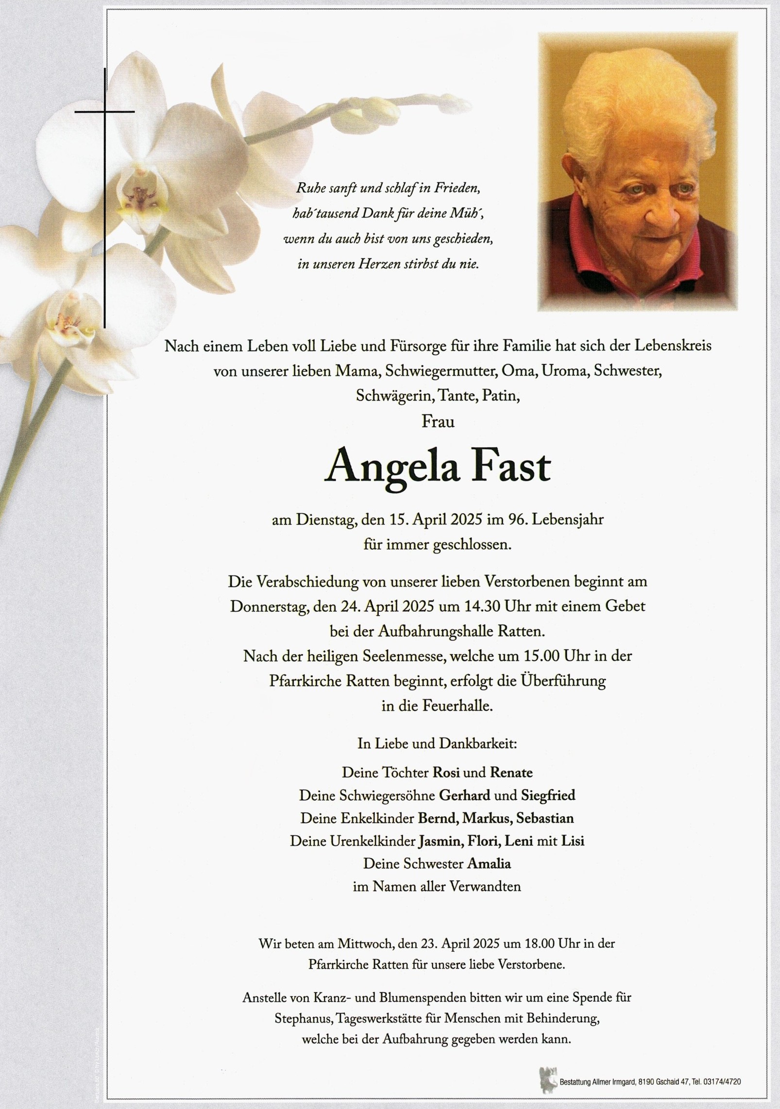Herzliches Beileid der gesamten Trauerfamilie. Herta und Sepp Kandlbauer