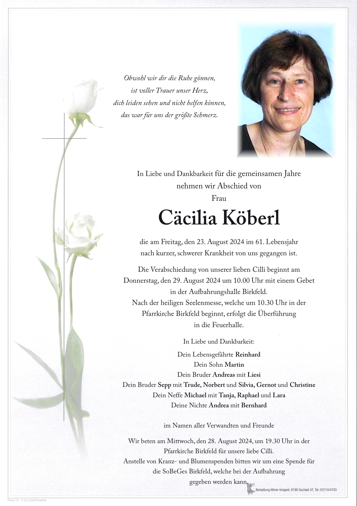Herzliches Beileid entbieten Maria,Bernhard,Benjamin,Tamara