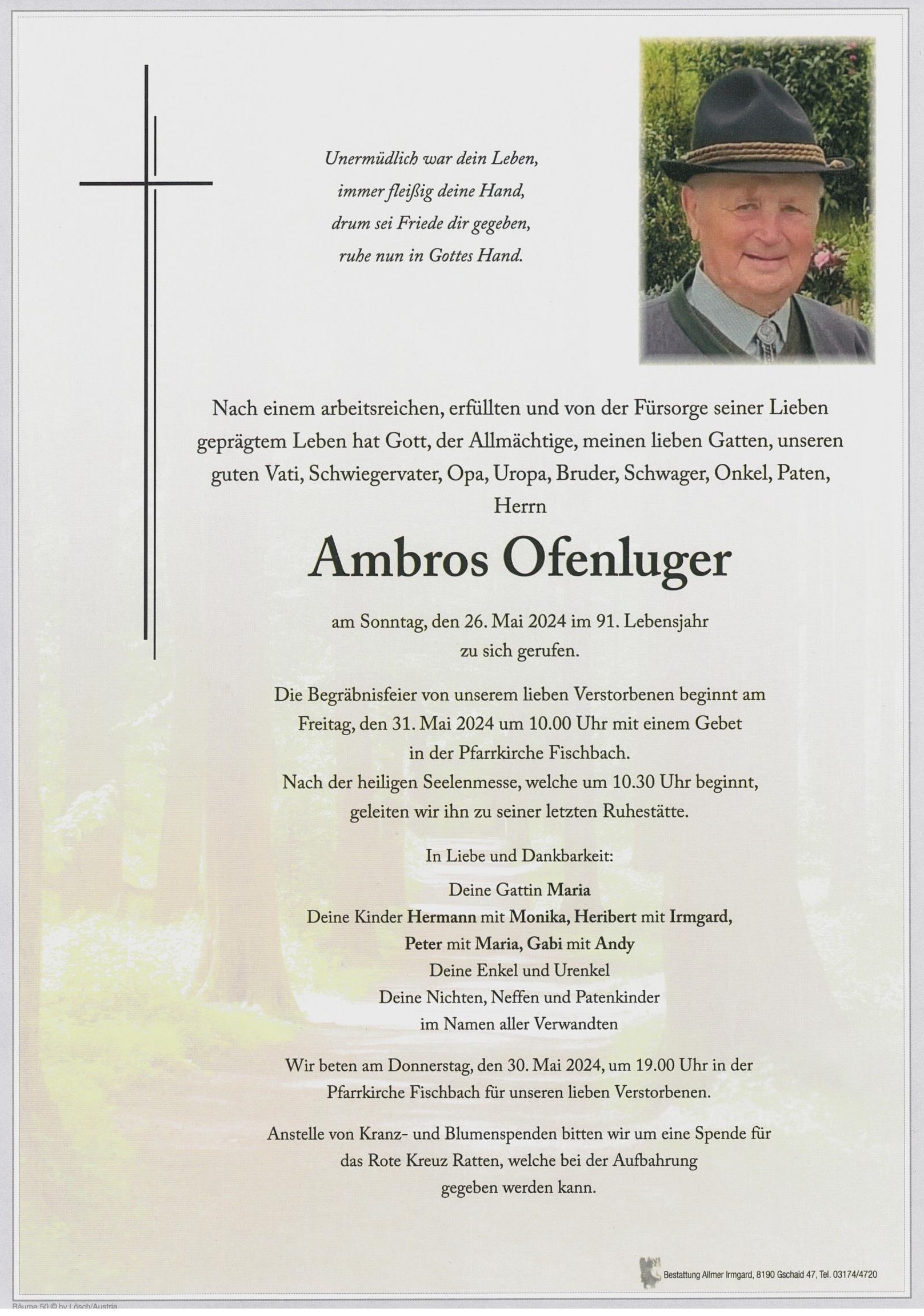 Unser aufrichtiges Beileid der Trauerfamilie. Ambros wird und immer in guter Erinnerung bleiben. Familie Sommersguter