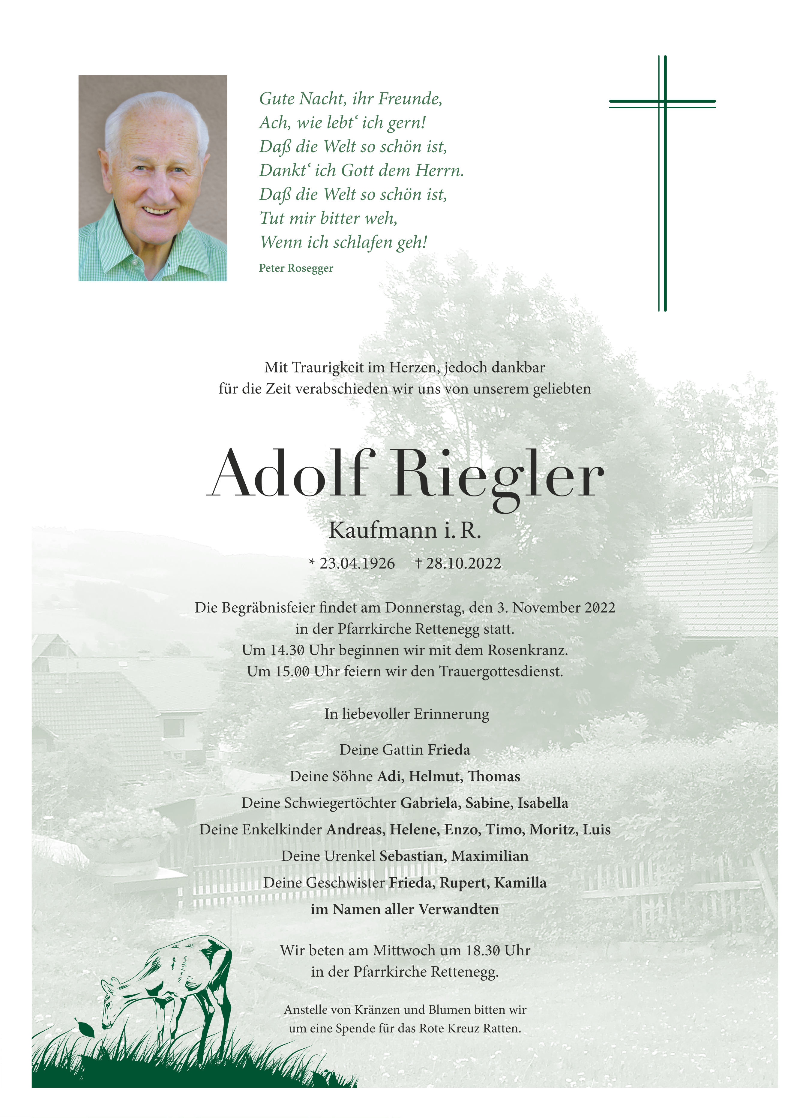 Der Herr ist mein Hirte, nichts wird mir fehlen, ruhe in Frieden lieber Herr Riegler. Marlies