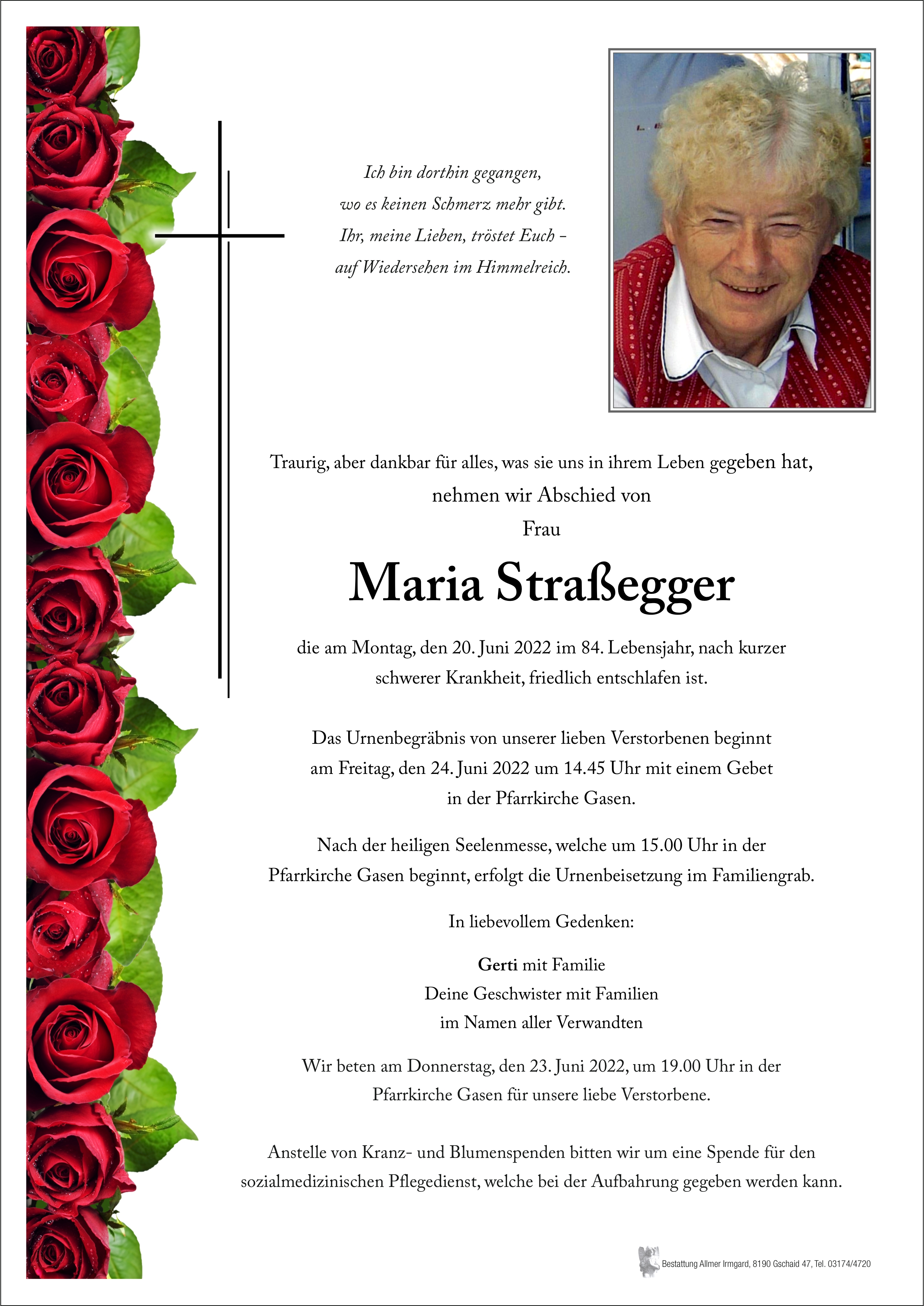 Aufrichtiges Beileid. Fam. Straßegger (Stadlhofer)