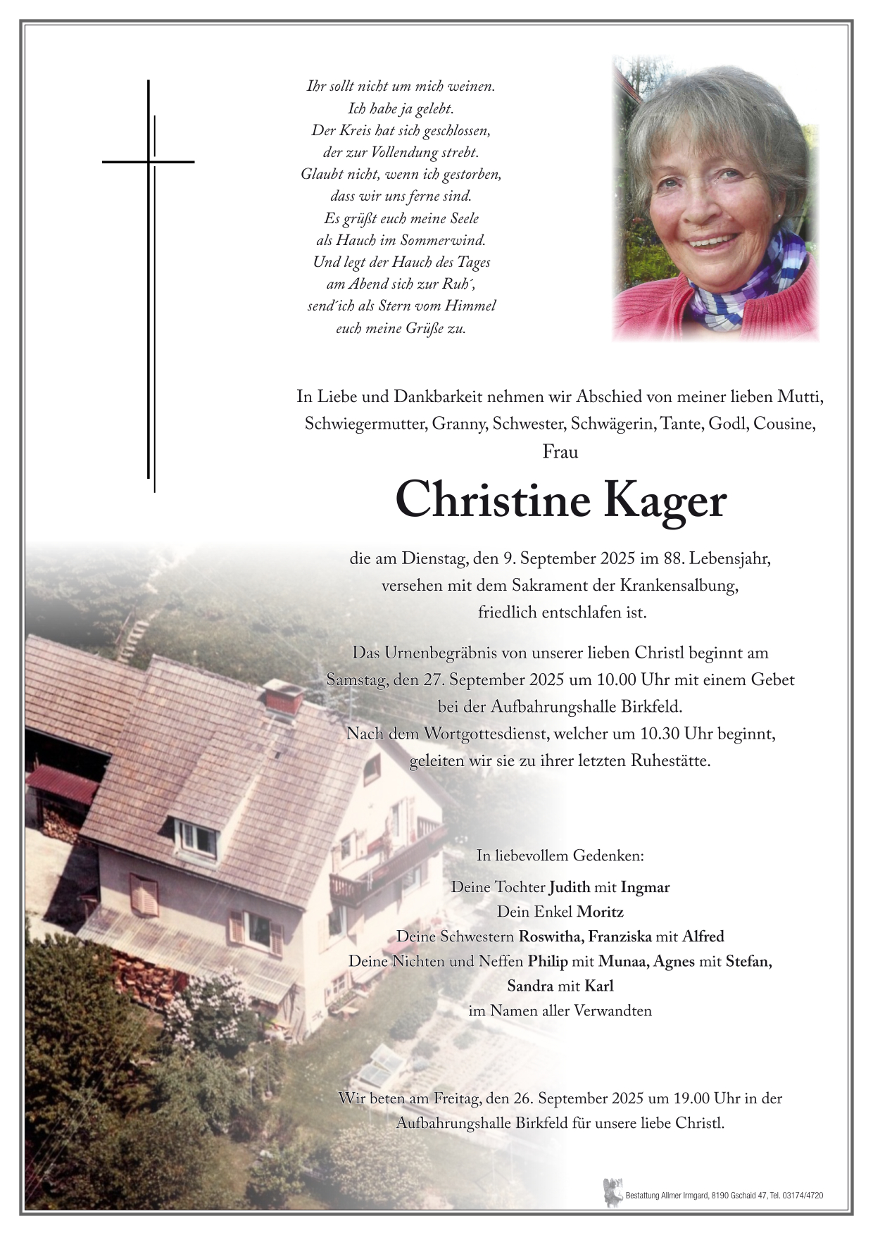 Danke das ich dich kennenlernen durfte ,mir werden deine Gespräche fehlen.Ruhe in Frieden liebe Frau Kager🕯🕯