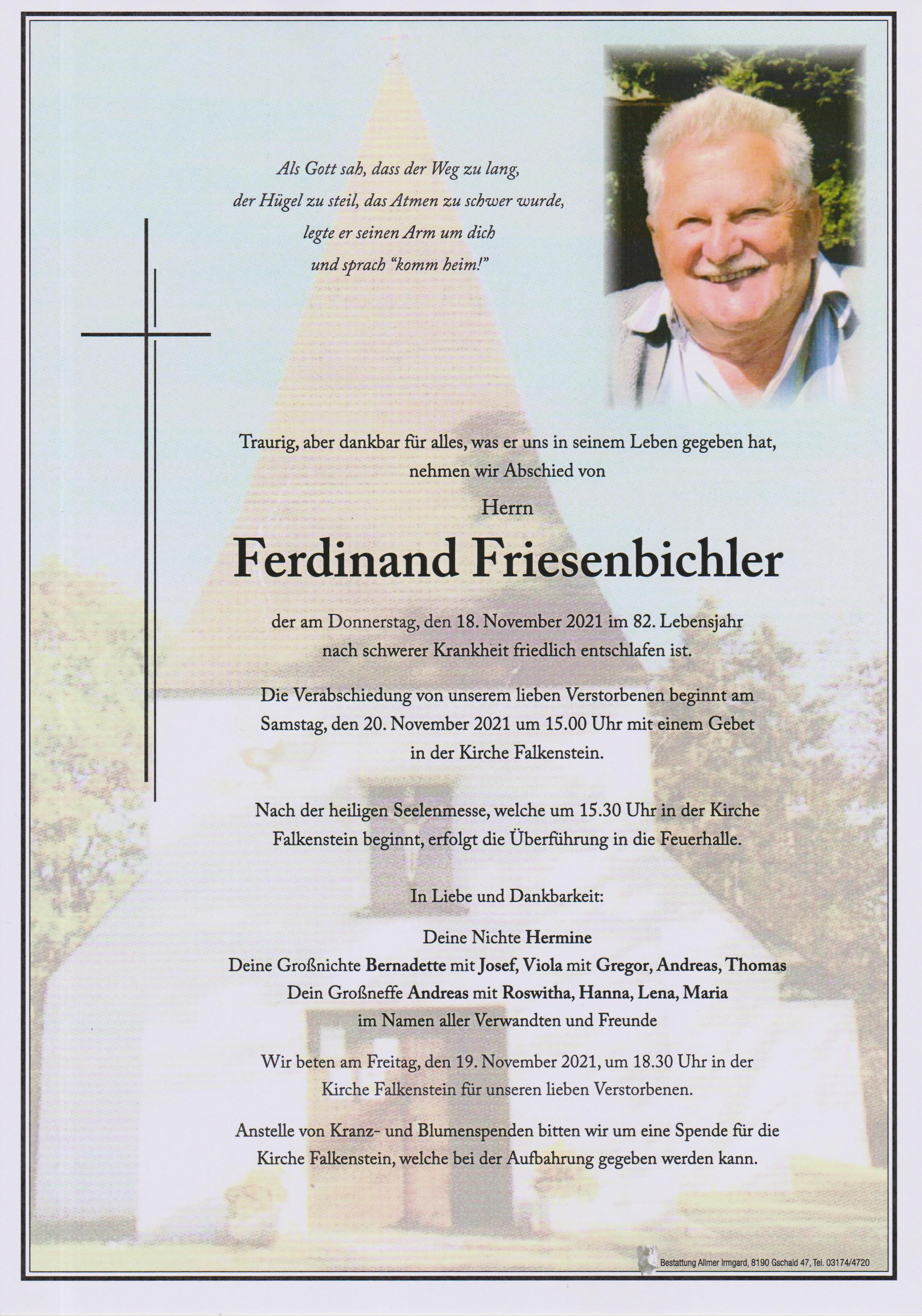 Ruhe in Frieden! In lieber Erinnerung! Von Liesi und Hans Friesenbichler.