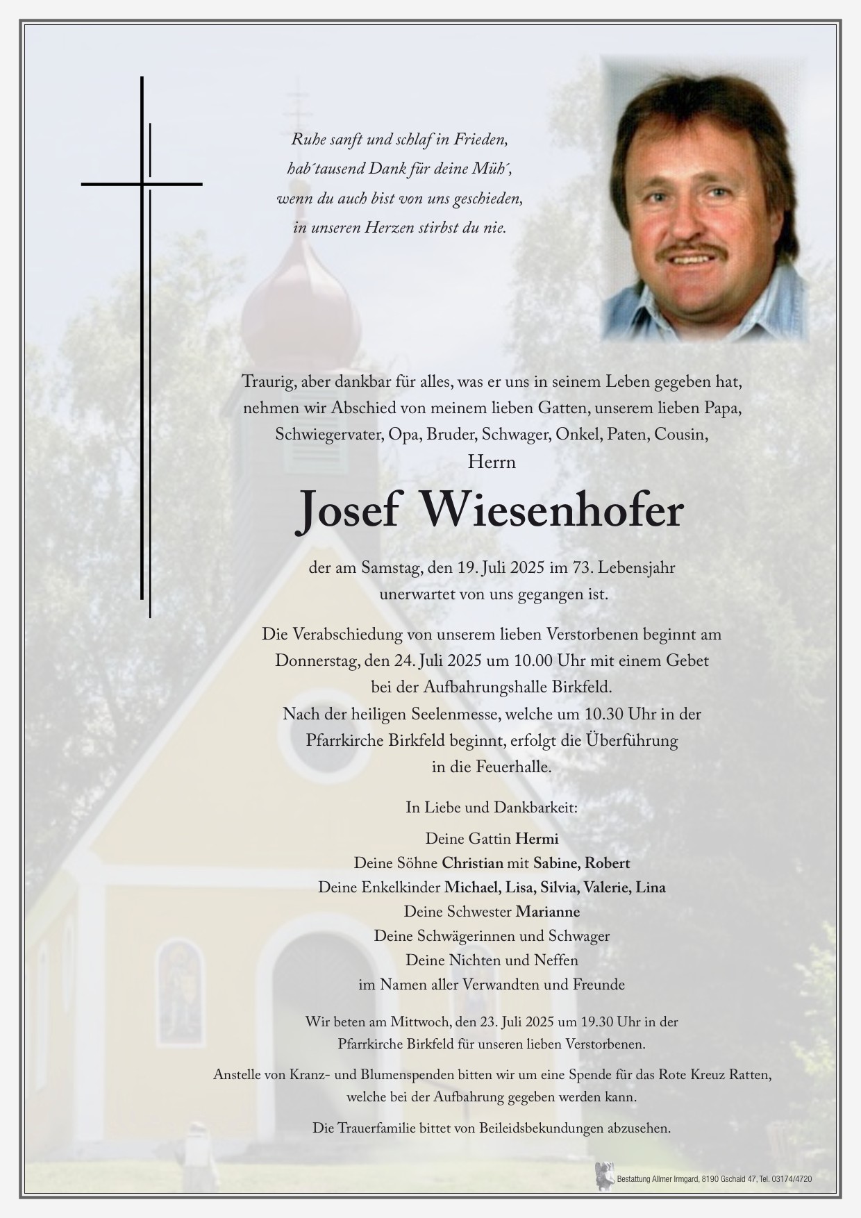 Kein Wiedersehen mehr. Ruhe in Frieden Sepp. Beileid der Trauerfamilie. Herta u. Karl Schneeberger